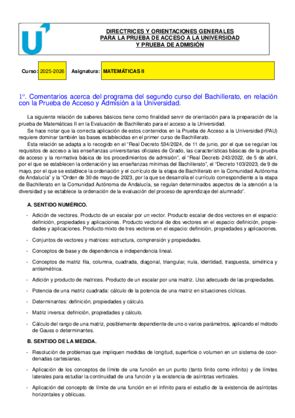 Orientaciones formato examen selectividad 2026 Matemáticas II www.academiaconoser.es presencial y streaming.