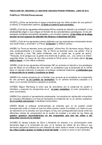 He publicado nuevos examenes de 1º Psicología del Desarrollo (Educ. Social/pedagogía): Plantillas (soluciones)