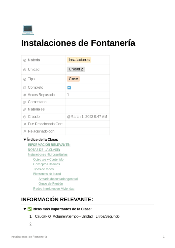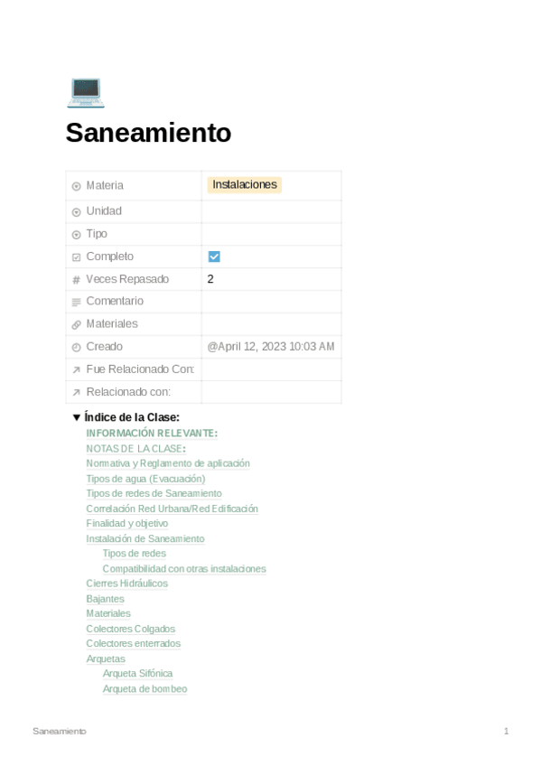 He publicado nuevos apuntes de 2º Acondicionamiento e Instalaciones I: Saneamiento.pdf