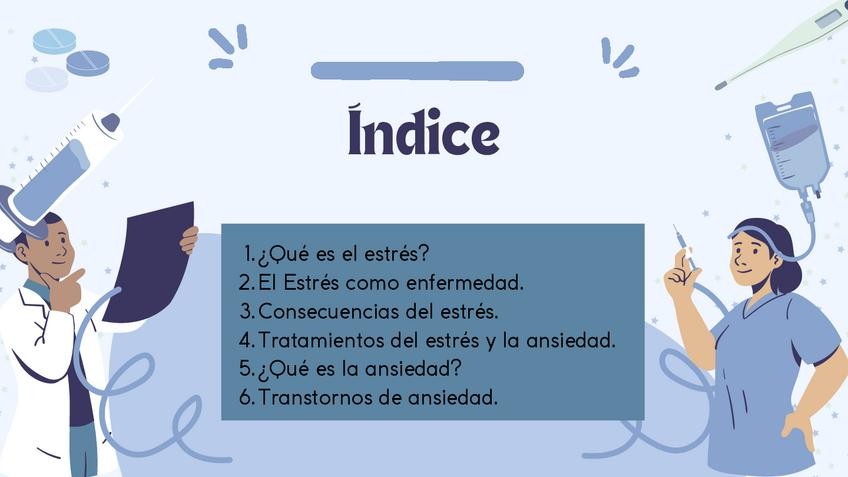 En el siguiente documento podrás encontrar apuntes sobre el estrés y la ansiedad de forma didáctica, gracias a la presentación realizada por Canva. Encontrarás el siguiente contenido: ¿Qué es el estrés? El Estrés como enfermedad. Consecuencias del estré