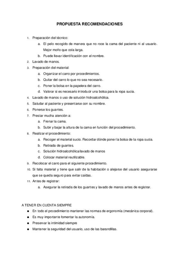En este documento encontrarás recomendaciones para realizar cualquier tipo de procedimientos a pacientes. En conclusión, aspectos muy importantes a tener en cuenta siempre.