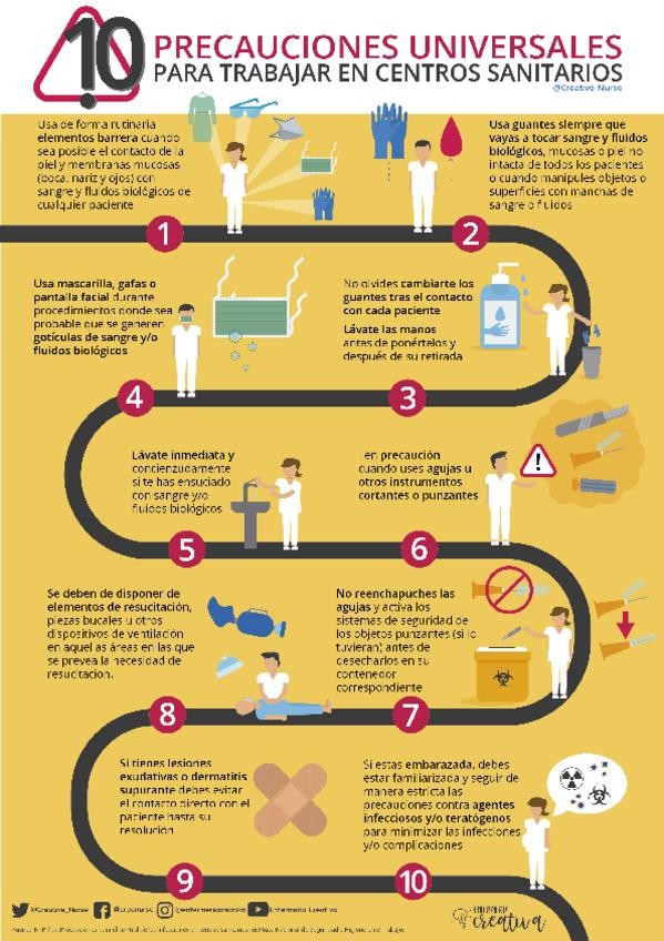 En esta infografía encontrarás todas las precauciones universales para trabajar en centros sanitarios. De esta forma, estudiarás el contenido de la unidad de manera más lúdica y didáctica.