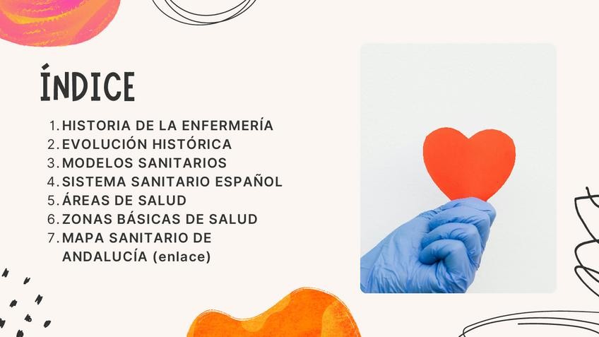 En este documento encontrarás una presentación en formato Canva con el Tema 1: Historia de la Enfermería. Consultarás el siguiente contenido: HISTORIA DE LA ENFERMERÍA EVOLUCIÓN HISTÓRICA MODELOS SANITARIOS SISTEMA SANITARIO ESPAÑOL ÁREAS DE SALUD ZONAS