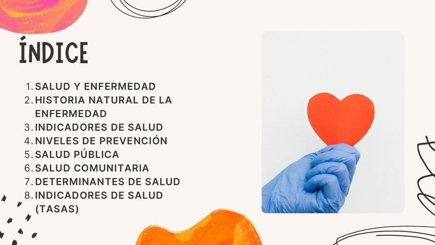 En el siguiente documento encontrarás apuntes sobre el tema de Salud Pública y Salud Comunitaria, en el que se encuentran los siguientes apartados: SALUD Y ENFERMEDAD HISTORIA NATURAL DE LA ENFERMEDAD INDICADORES DE SALUD NIVELES DE PREVENCIÓN SALUD PÚBL