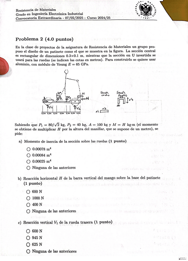 He publicado nuevos examenes de 2º Resistencia de Materiales: Extraordinario-patinete-25.pdf