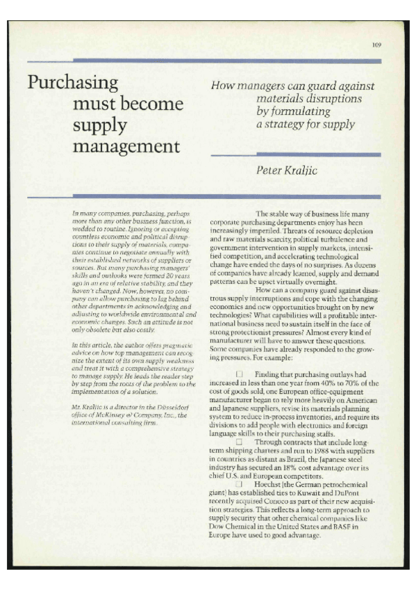He publicado nuevos apuntes de 3º Dirección de la Producción: Traducción texto Kraljic (tema 8)