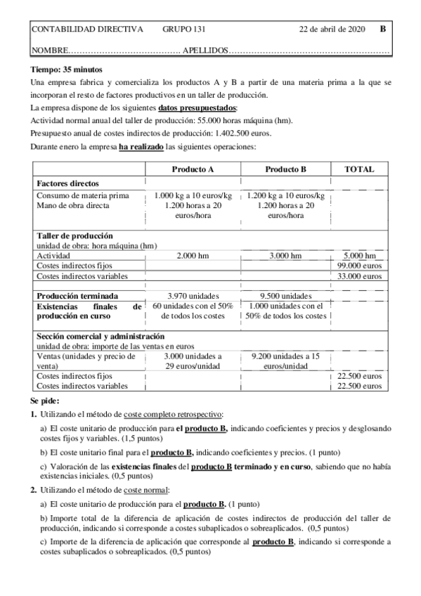 He publicado nuevos apuntes de 3º Contabilidad directiva: Examenes - 1er parcial (2020)