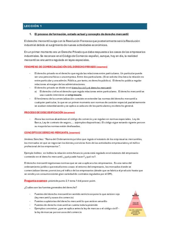 Examen final de derecho mercantil, tiene una parte de desarrollo y otra de preguntas cortas