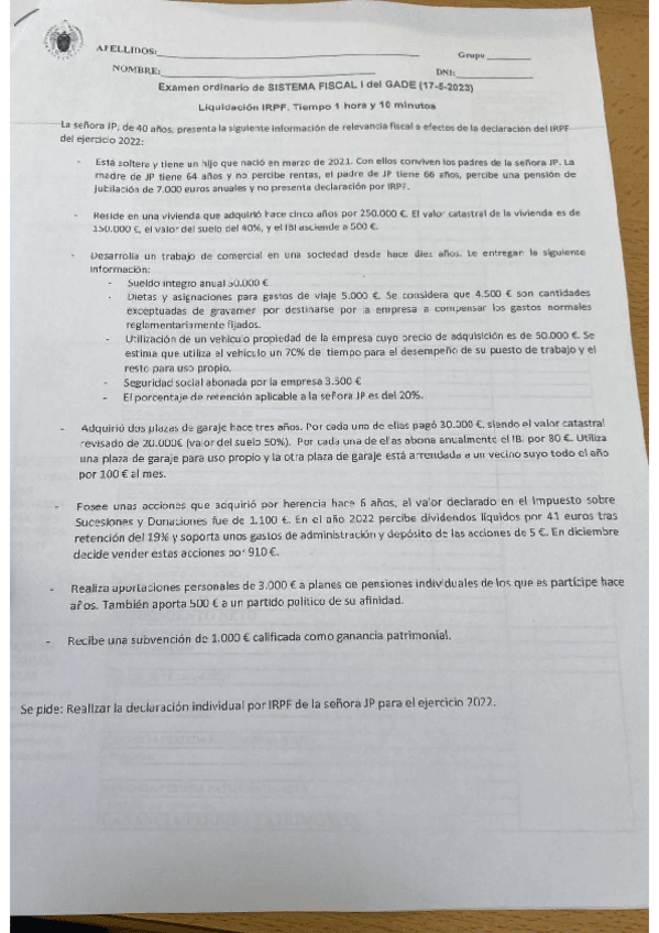 He publicado nuevos examenes de 2º Sistema Fiscal I: Examen final convocatoria ordinaria 2022.pdf