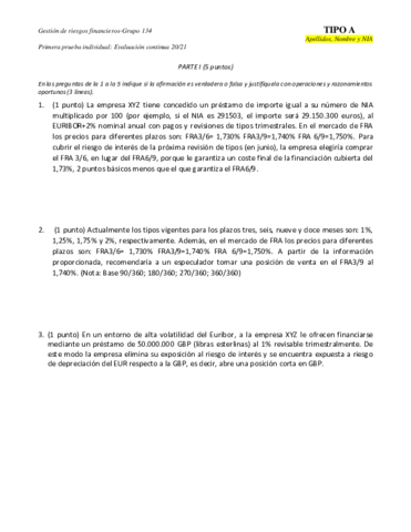 He publicado nuevos examenes de 3º Gestión de riesgos financieros: 1ER PARCIAL 20/21 ENUNCIADOS