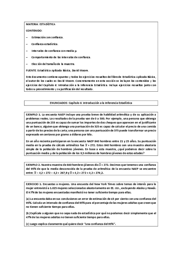 He publicado nuevos ejercicios de 1º Estadística: 01_Capítulo 6_Introducción a la Inferencia Estadística (I).pdf