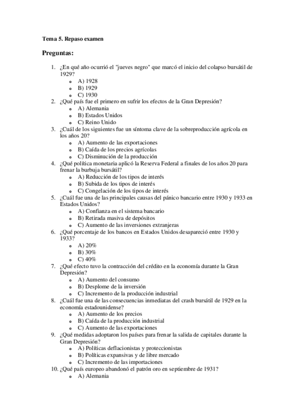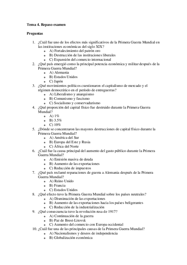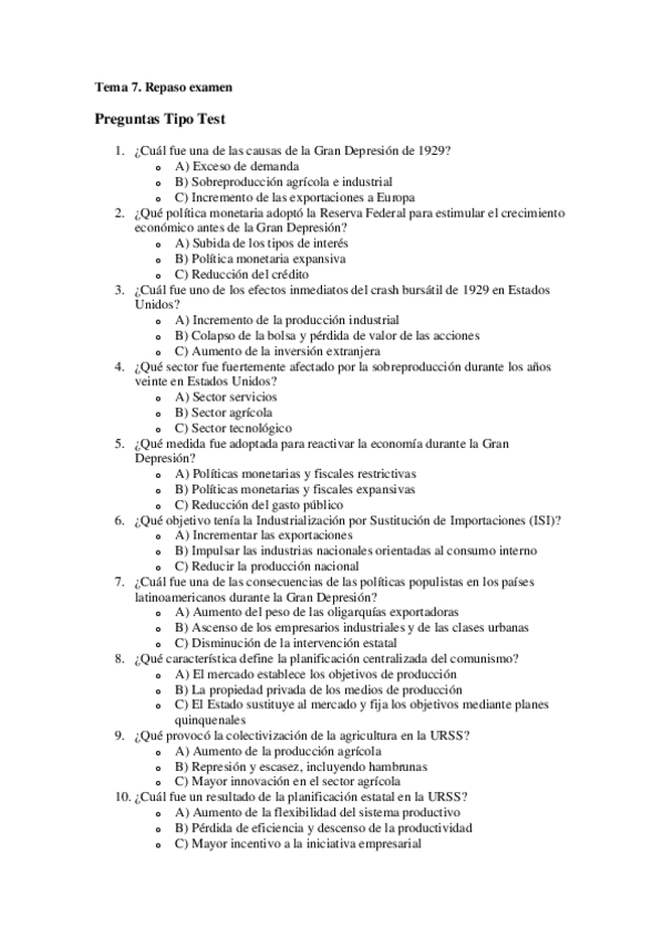 He publicado nuevos examenes de 2º Hª Económica Mundial y de España s. XIX y XX: Tests repaso examen