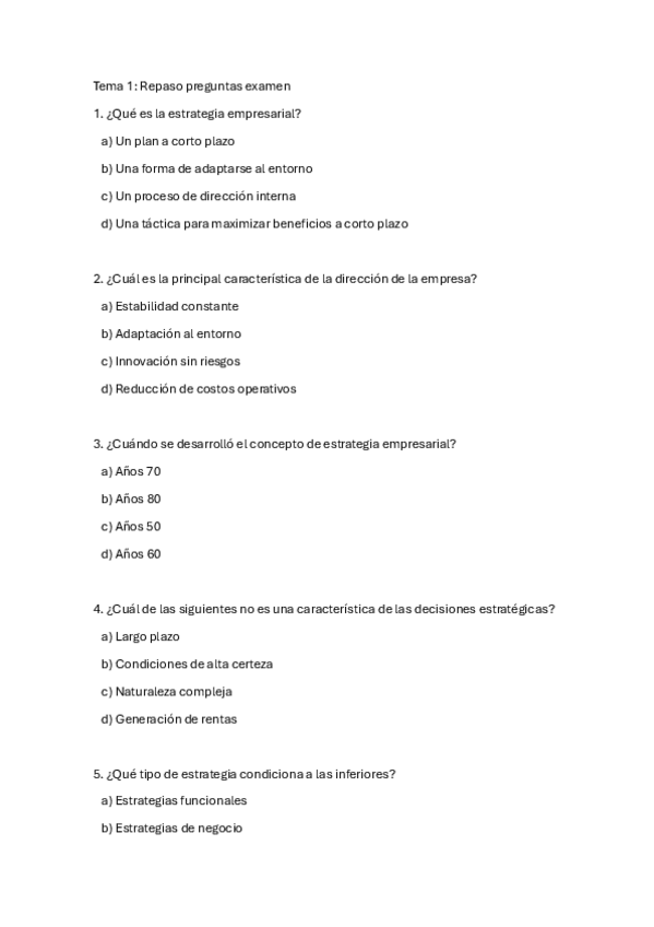 He publicado nuevos examenes de 3º Dirección Estratégica de la Empresa I: Tests temas para examen
