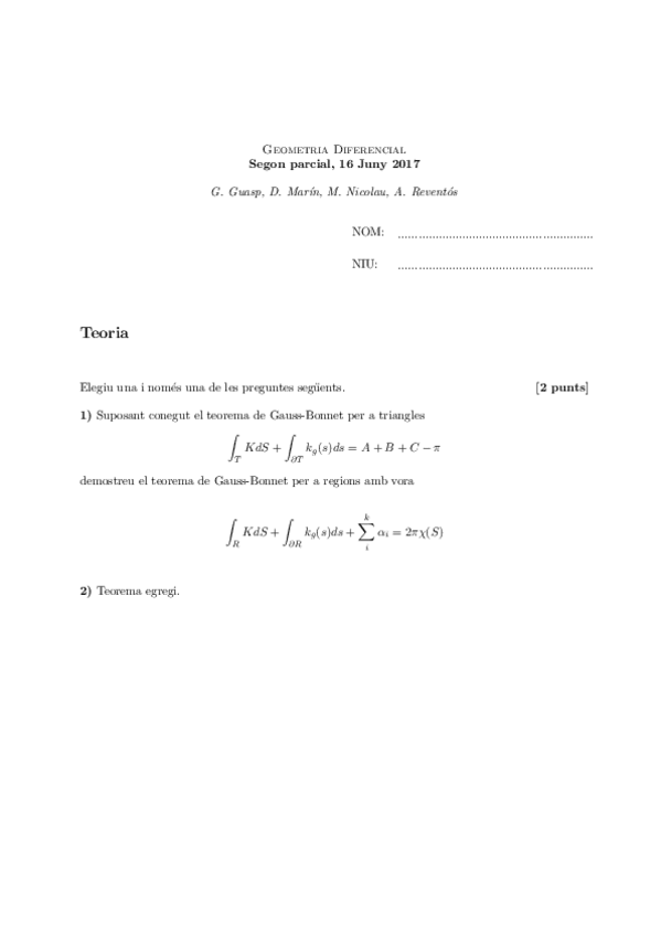 He publicado nuevos examenes de 3º Geometria Diferencial: Exámenes