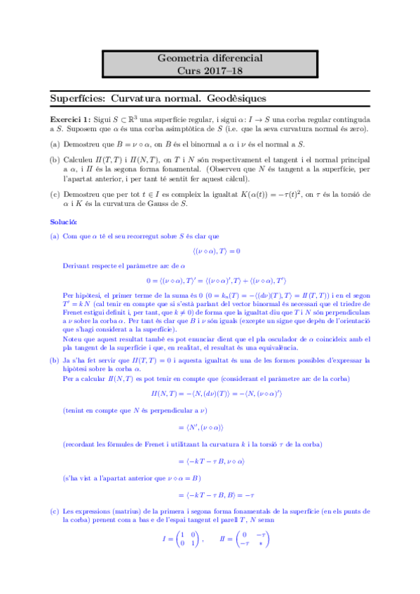 He publicado nuevos ejercicios de 3º Geometria Diferencial: Ejercicios corregidos