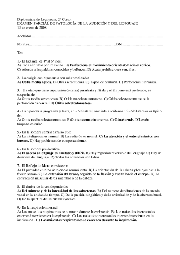 He publicado nuevos examenes de 2º Patología Médica de la Audición y del Lenguaje: Examen