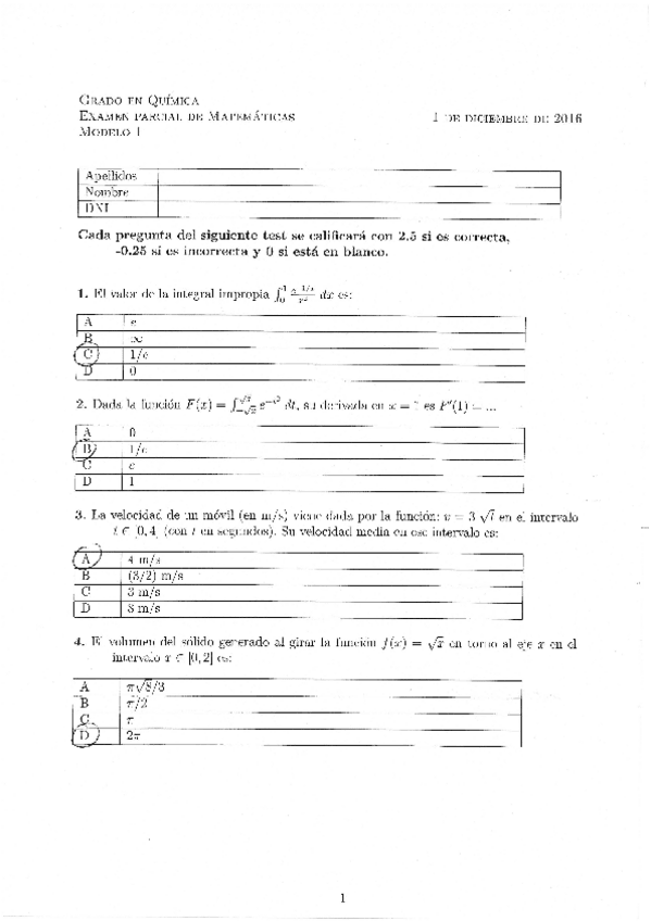 Examen de la primera parte de la asignatura. Había otras 3 partes.