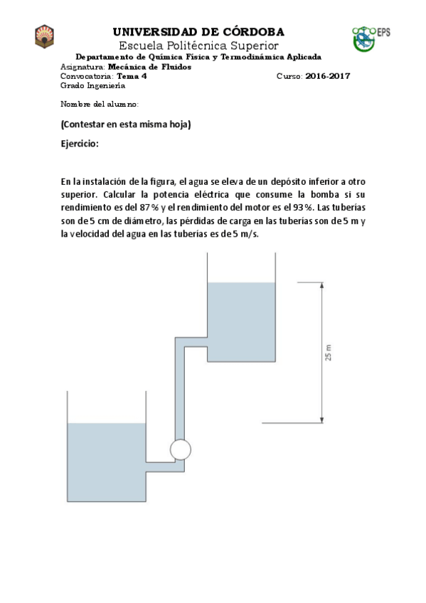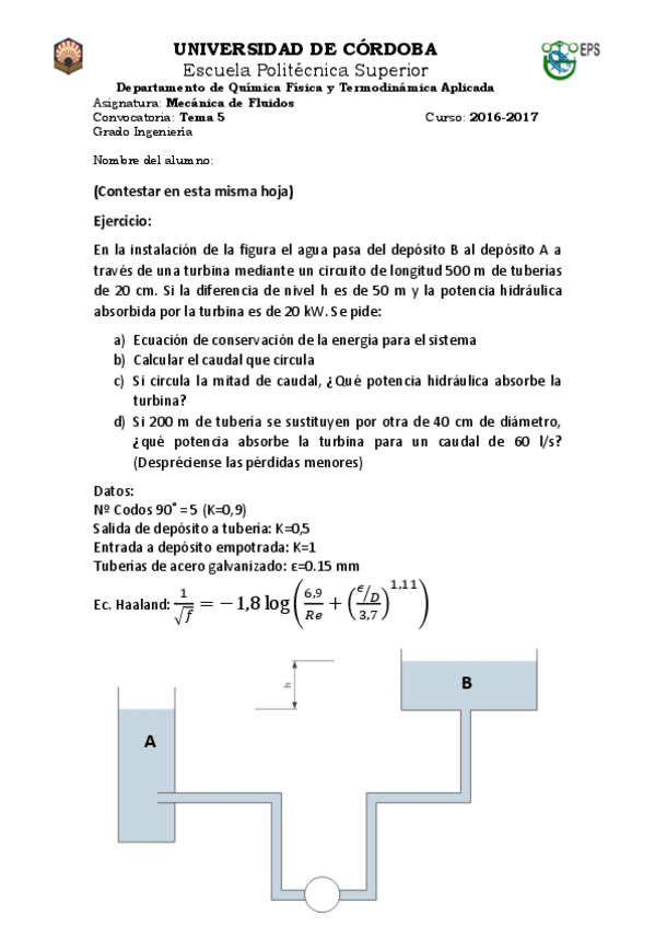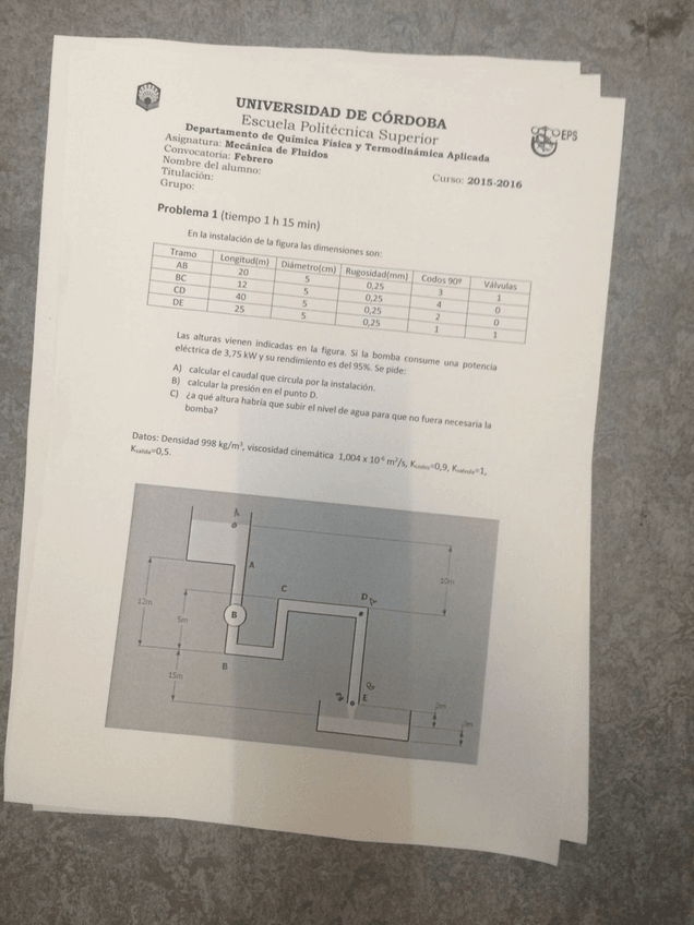 He publicado nuevos examenes de 2º Mecánica de Fluidos: EXÁMENE 2016