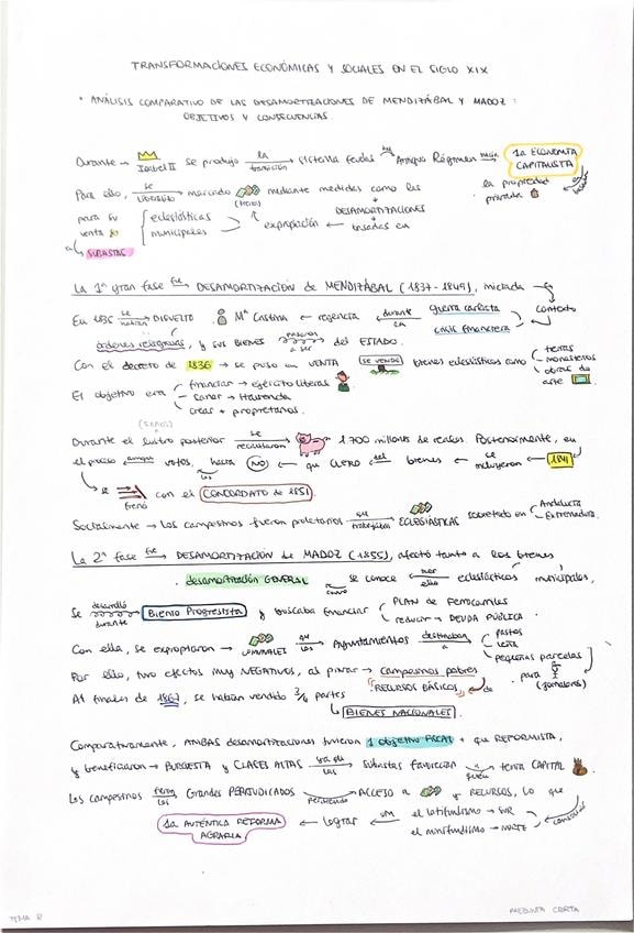 PREGUNTA CORTA PAU CYL HISTORIA DE ESPAÑA. ANÁLISIS COMPARATIVO DE LAS DESAMORTIZACIONES DE MENDIZÁBAL Y MADOZ, OBJETIVOS Y CONSECUENCIAS.