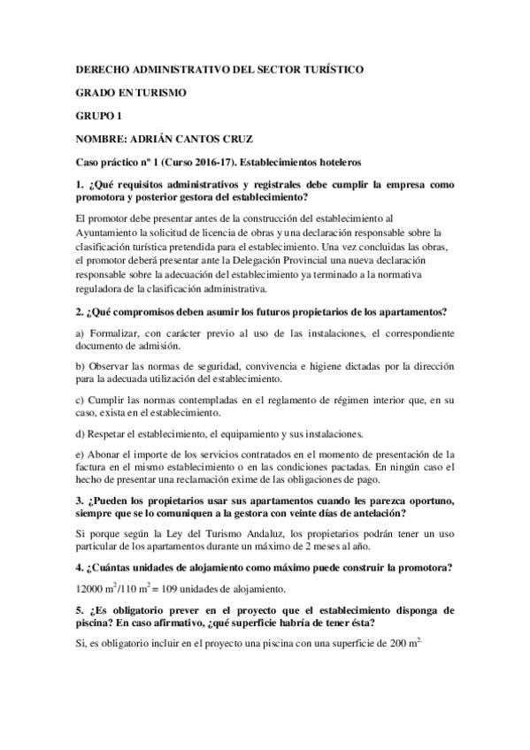 He publicado nuevos practicas de 3º Derecho Administrativo del Sector Turistico: Caso práctico 1 Establecimientos hoteleros.pdf