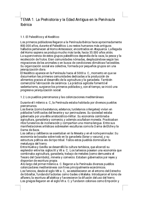 Estos apuntes del Tema 1 — La Prehistoria y la Edad Antigua en la Península Ibérica ofrecen un resumen sencillo de estudiar, diseñado específicamente para la preparación de la PAU. Encontrarás explicaciones claras del Paleolítico, Neolítico, pueblos prerr