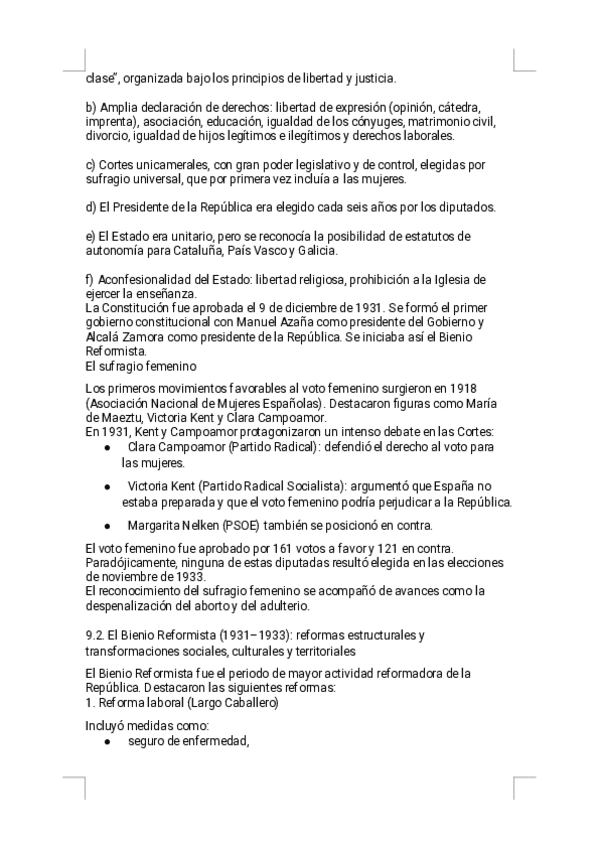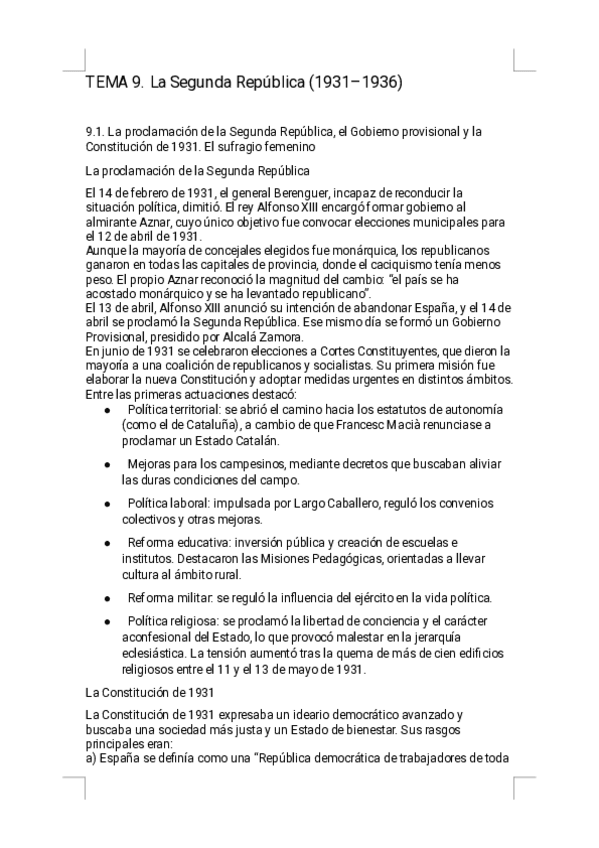 Estos apuntes del Tema 9 - La Segunda República ofrecen un resumen riguroso, visual y sencillo de estudiar, diseñado específicamente para la preparación de la PAU. Encontrarás explicaciones claras de la proclamación de la República, la Constitución de 193