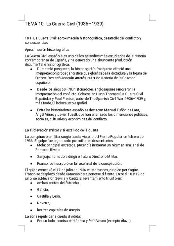 Estos apuntes del Tema 10 - La Guerra Civil Española ofrecen un resumen riguroso, visual y sencillo de estudiar, diseñado específicamente para la preparación de la PAU. Encontrarás explicaciones claras de la conspiración militar, el estallido del conflict