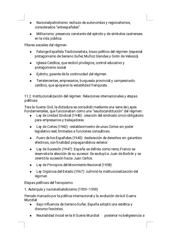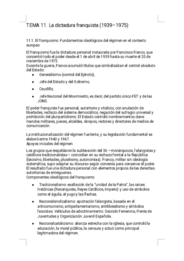 Estos apuntes del Tema 11 - La dictadura franquista ofrecen un resumen riguroso, visual y sencillo de estudiar, diseñado específicamente para la preparación de la PAU. Encontrarás explicaciones claras de los fundamentos ideológicos del régimen, las Leyes