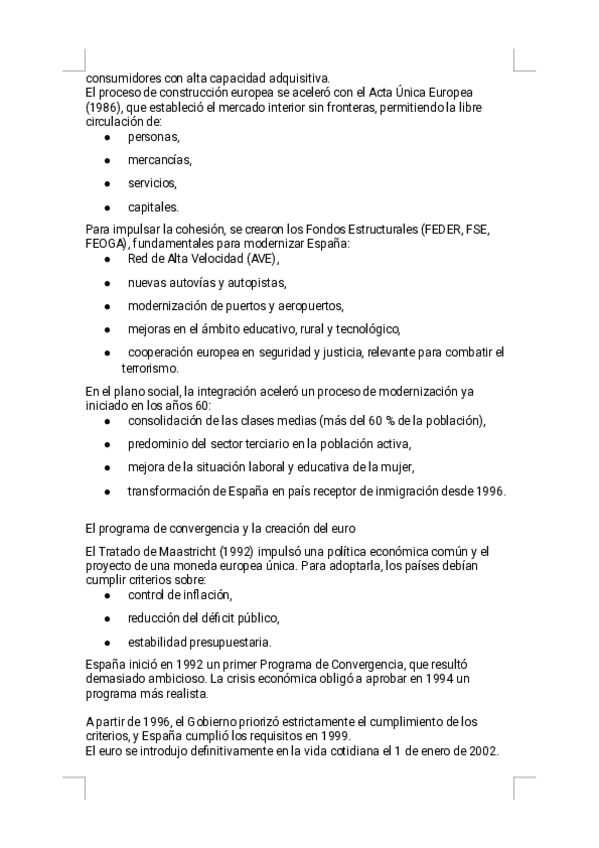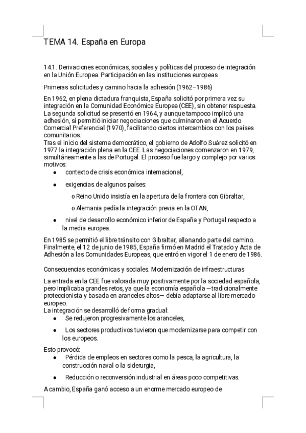 Estos apuntes del Tema 14 - España en Europa ofrecen un resumen riguroso, visual y sencillo de estudiar, diseñado específicamente para la preparación de la PAU. Encontrarás explicaciones claras del proceso de adhesión a la CEE, modernización económica, im