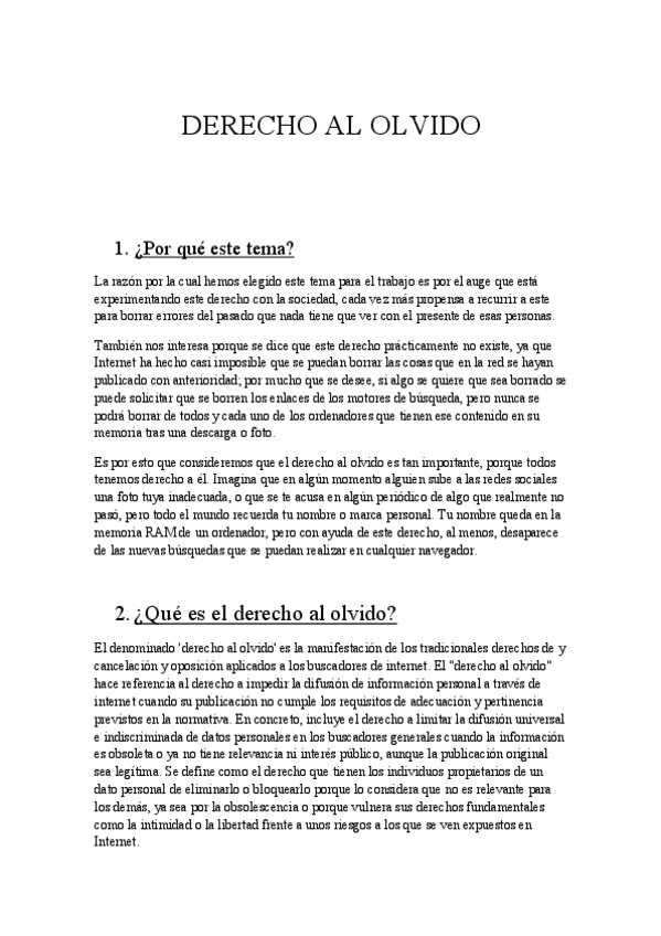 He publicado nuevos apuntes de 1º Derecho de la Información: Trabajo grupo Derecho. Derecho al olvido.pdf
