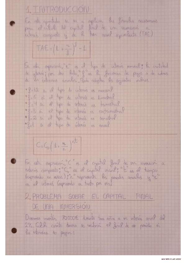 Situación de aprendizaje sobre el capital de una infersión y la tasa anual equivalente (TAE).
