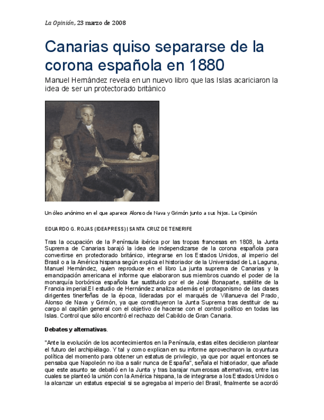 Texto sobre La Junta Suprema de Canarias