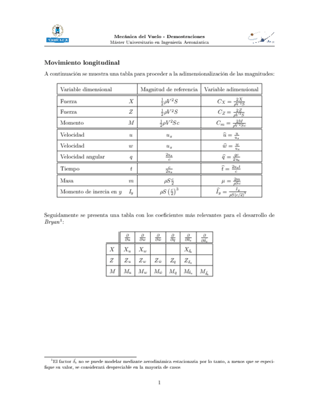 Tablas con adimensionalizaciones y los parámetros más importantes del desarrollo de Bryan