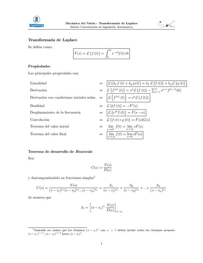 Definición, propiedades, teorema de Heaviside y tabla con las transformadas más utilizadas.
