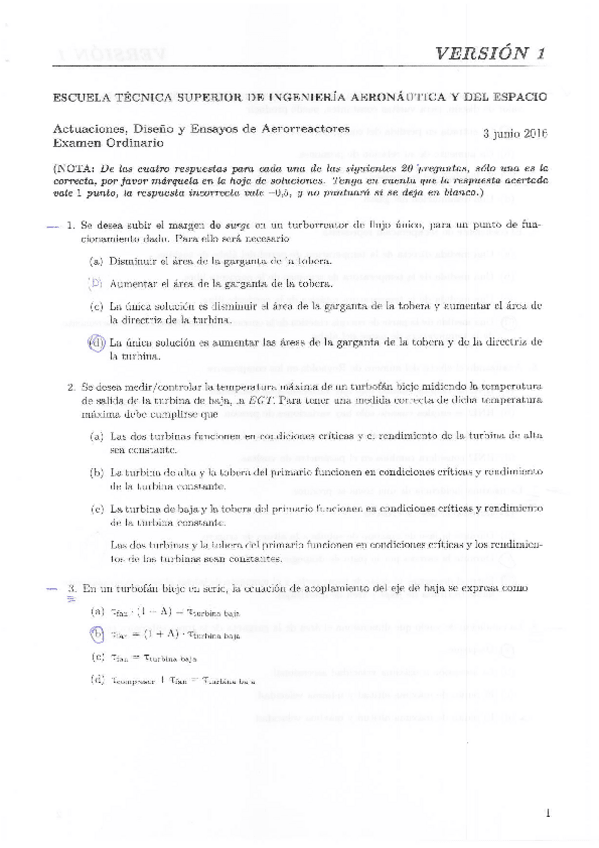 He publicado nuevos examenes de 1º Actuaciones, Diseño y Ensayos de Aerorreactores: Recopilación test 2 parcial