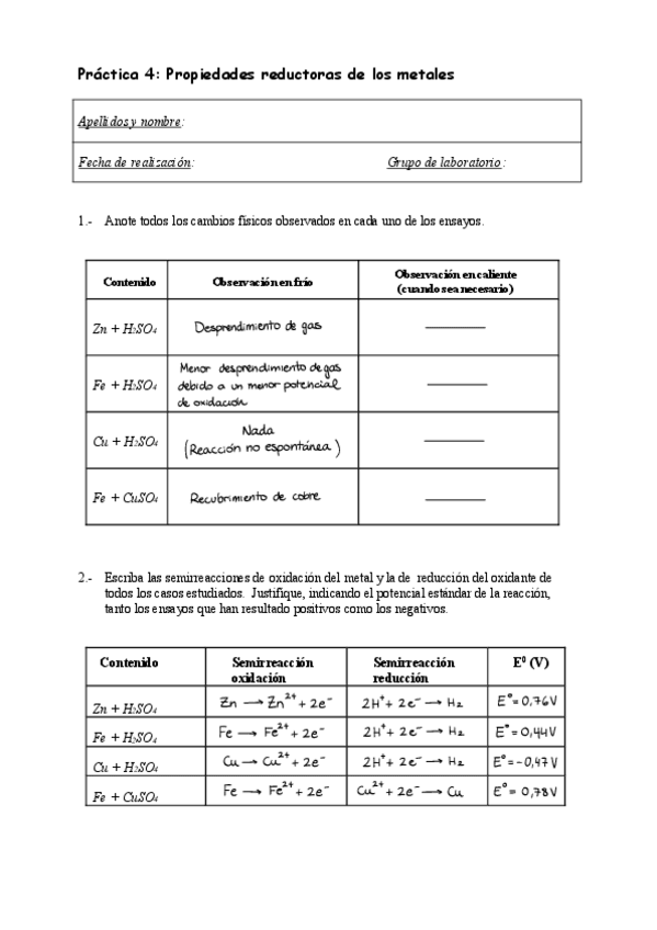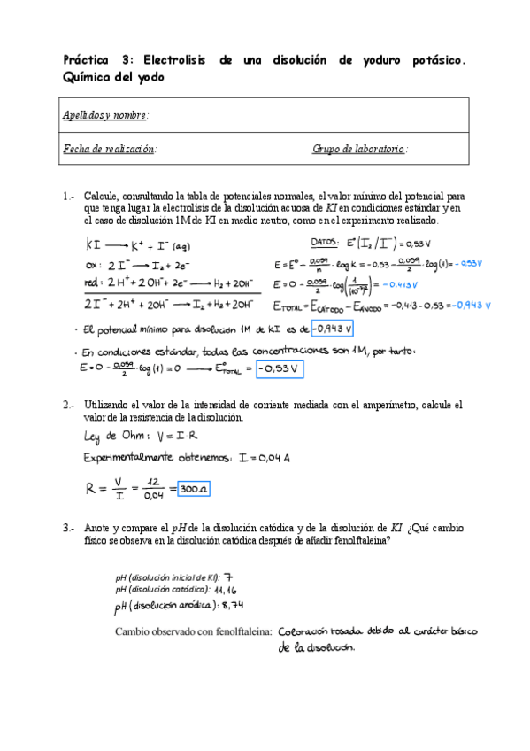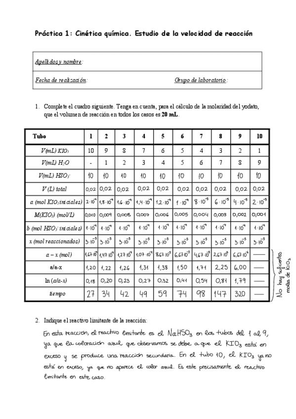Prácticas de química del año 24 - 25, corregidas con un 10