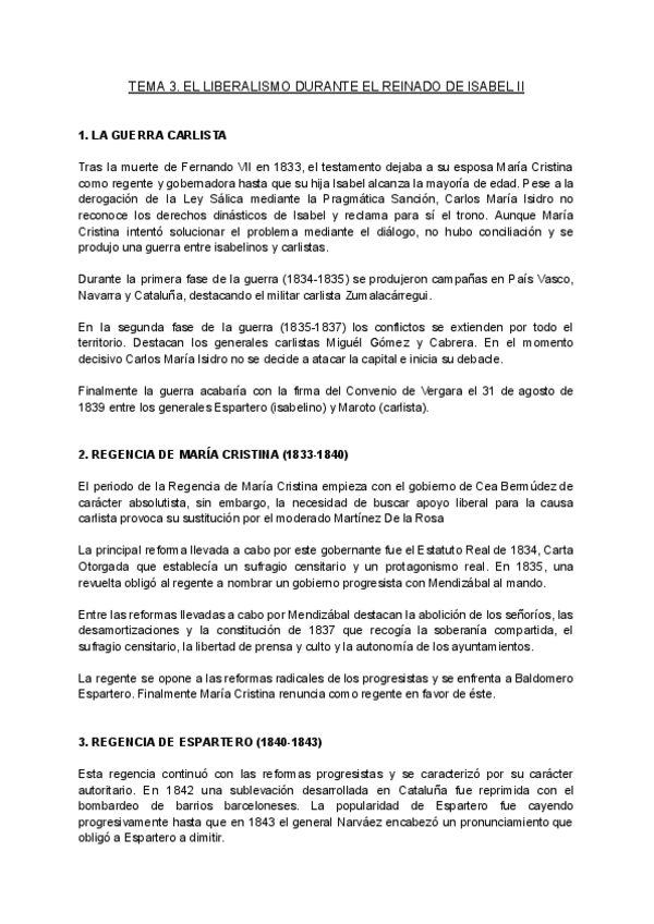 EL liberalismo durante del Reinado de Isabel II
