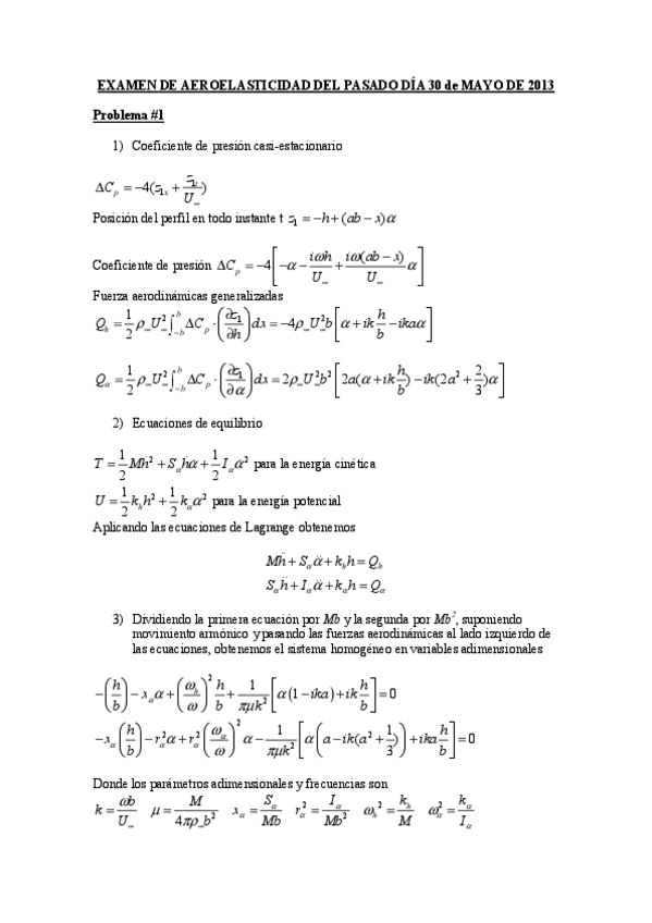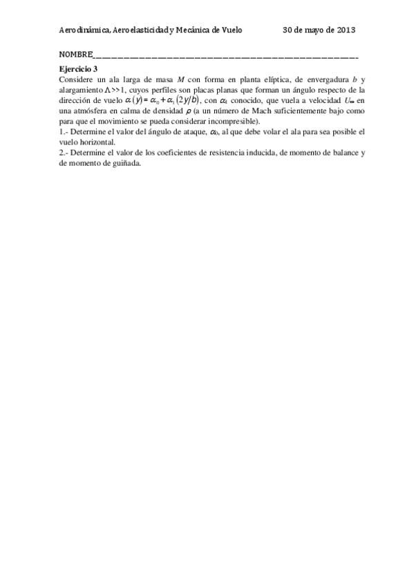 He publicado nuevos examenes de 3º Aerodinámica, Aeroelasticidad y Mecánica del Vuelo: Examenes SOLUCIONADOS 2022