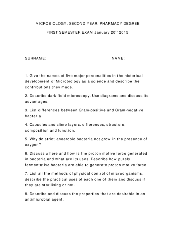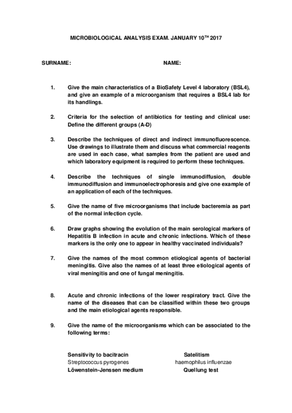 He publicado nuevos apuntes de 4º Análisis Microbiológicos y Parasitológicos: MICROBIOLOGICAL ANALYSIS EXAM Jan 10 2017.docx