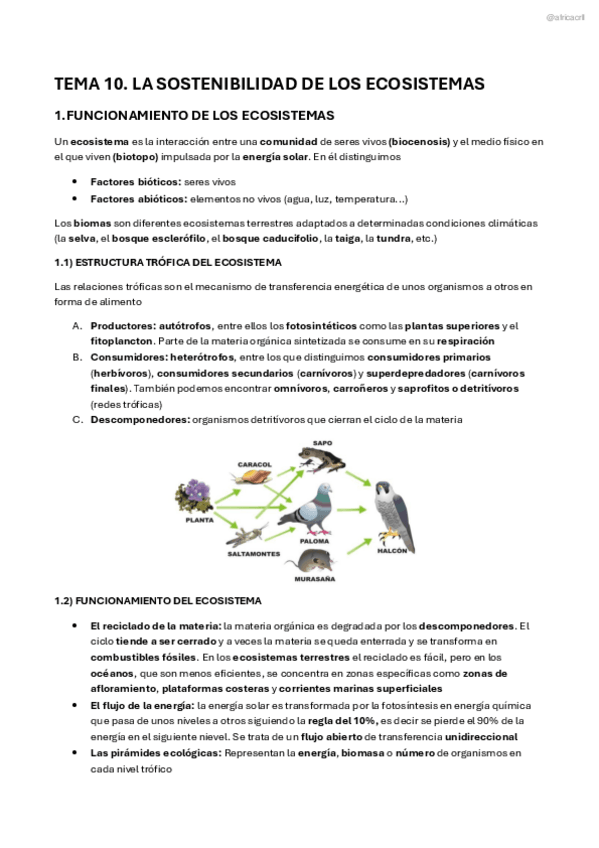 Resumen completo y claro de la sostenibilidad de los ecosistemas y los ciclos biogeoquímicos (carbono, fósforo, azufre y nitrógeno). Ideal para repasar antes del examen o completar tus apuntes.