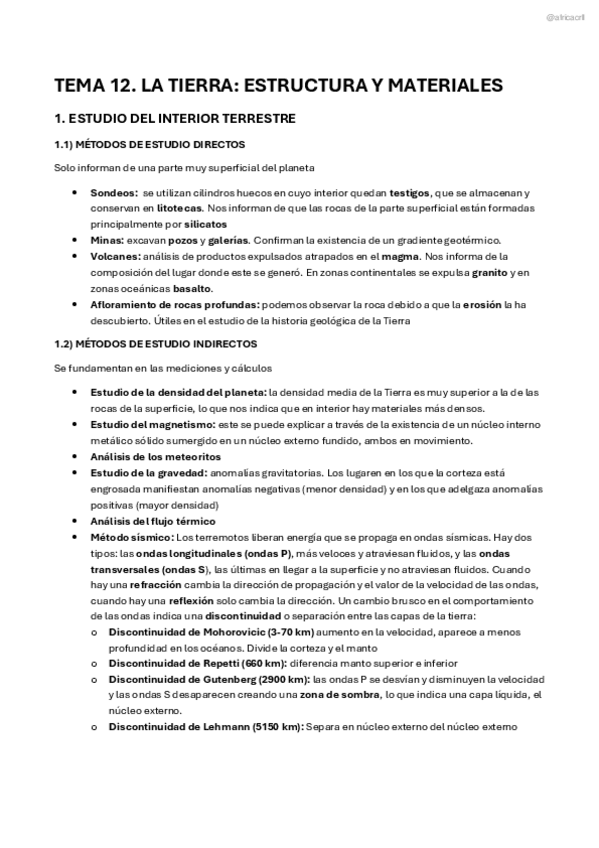Resumen completo y claro sobre la estructura interna de la Tierra y los minerales. Ideal para repasar antes del examen o completar tus apuntes.