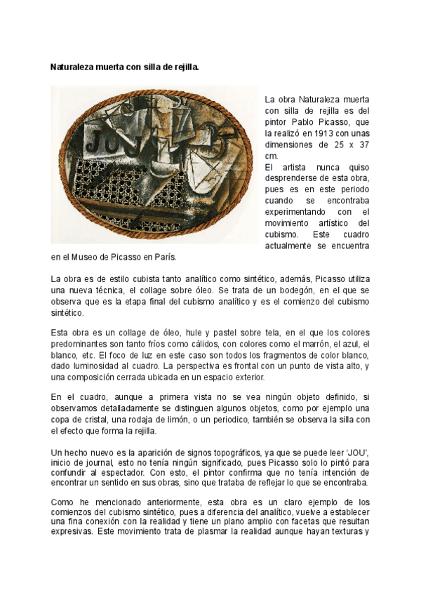 He publicado nuevos practicas de 2º Historia del Arte: Comentario-Naturaleza-muerta-con-silla-de-rejilla.-Picasso.pdf