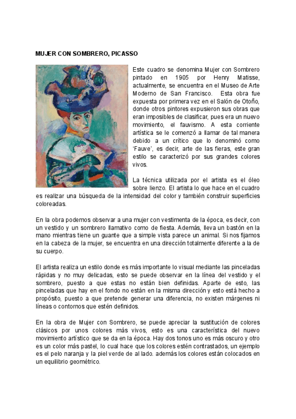 He publicado nuevos practicas de 2º Historia del Arte: MUJER-CON-SOMBRERO-Matisse.pdf
