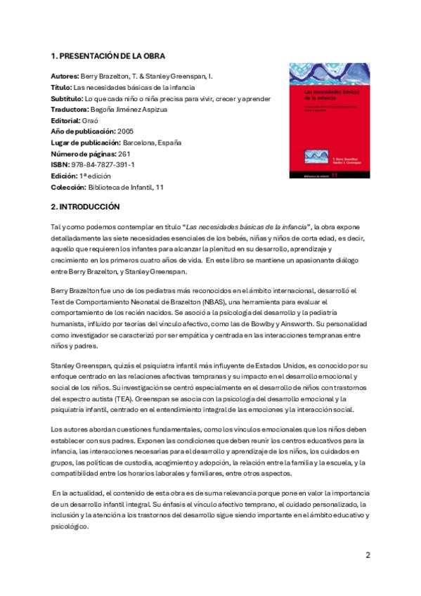 Trabajo de recensión del libro Las necesidades básicas de la infancia para que lo cojáis de referencia!