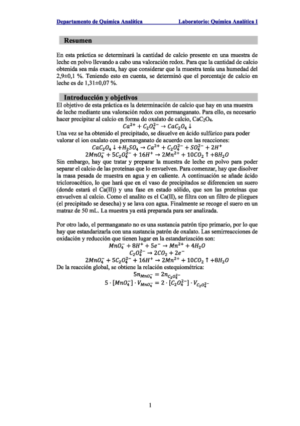 He publicado nuevos practicas de 2º Química Analítica I: informes y hojas de datos