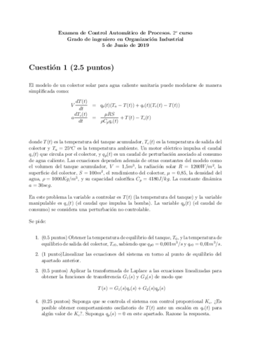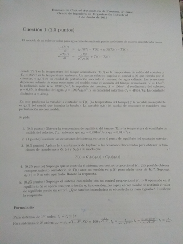 He publicado nuevos apuntes de 2º Control Automático y de Procesos: final junio 2019 enunciado y solución