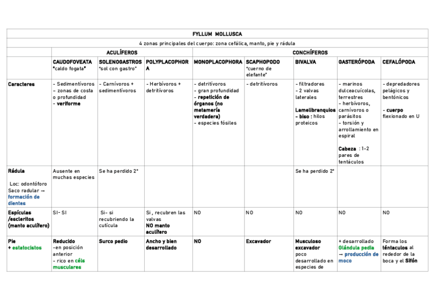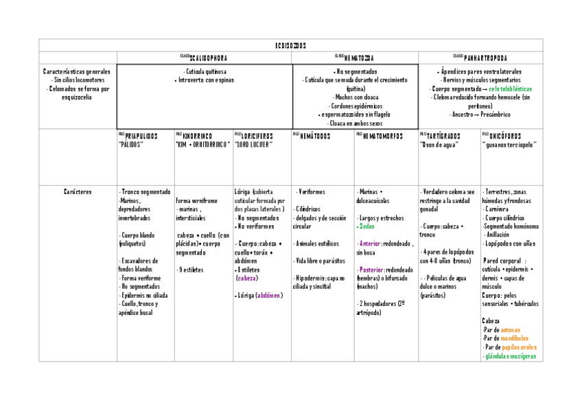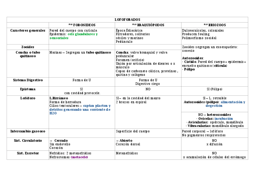 He publicado nuevos apuntes de 2º Zoología II: Tablas de repaso