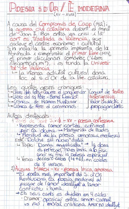 Apunts en català sobre el segle d'Or, 1er Batxillerat. Inclou: - Context general - Autors importants - Les 4 cròniques - Diferència entre aquest segle i els trobadors