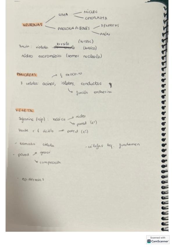 Apuntes tomados en clase a lo largo de la segunda práctica de laboratorio del módulo de botánica.