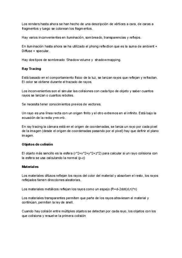 He publicado nuevos apuntes de 3º Procesadores gráficos avanzados: resume-Ray-Tracing.pdf